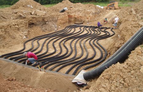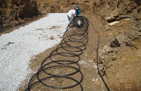 Our prototype greenhouse has a geothermal air and water system that provides all of the cooling in the summer. Arkansas soils average about 58 degrees F in the subsoil, and the deeper you go, the more of the year you can tap that cool temperature for cooling either air or water. Our geothermal air pit is 9’ deep and as big as an Olympic swimming pool. Summer air entering the greenhouse must pass through several thousand feet of dry 4” tube that serpentines through the cool, dark soil before entering the greenhouse. It has dumped much of its heat in the soil before entering and being circulated. Likewise, a liquid nutrient that is pumped through the hydroponic channels passes through 1800’ of ¾” tubing that is also buried to a depth of 9’. Even if the greenhouse air temperature is 90 degrees, if the water running over the roots is only 75 degrees, the plants think it is cool inside and are happy.